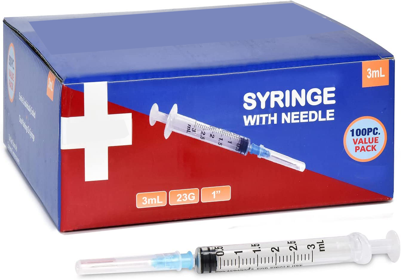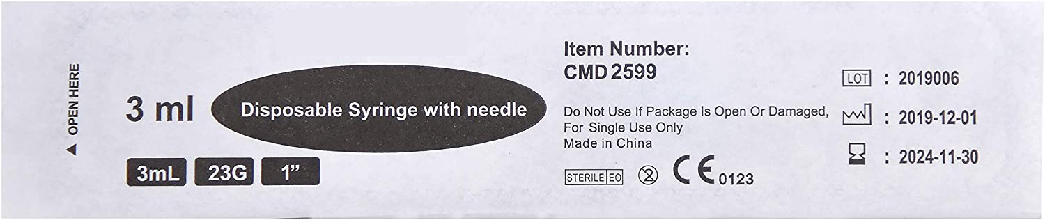MEDICAL SUPPLIE – Each 3ml Syringe with Needle  – 23G, 1″ Needle comes individually sealed in a blister package ensuring maximum safety and sterility.