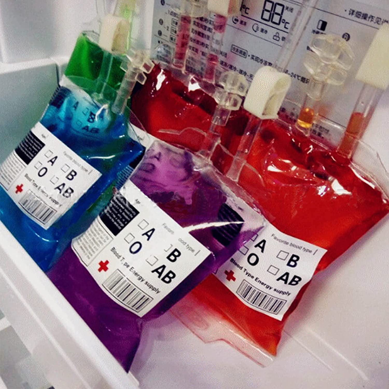 Completely food safe. This blood bag can contain soda, alcohol and juice. It comes with a pre-stamped hole in the top, for convenient hanging.