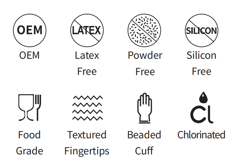 - Standard: FDA 510K,CE, EN455, EN374, TYPE B, EN1186,ASTM D6319,ASTM D6978